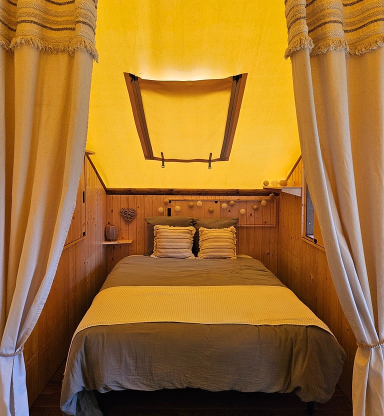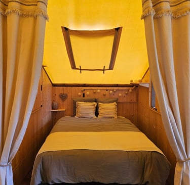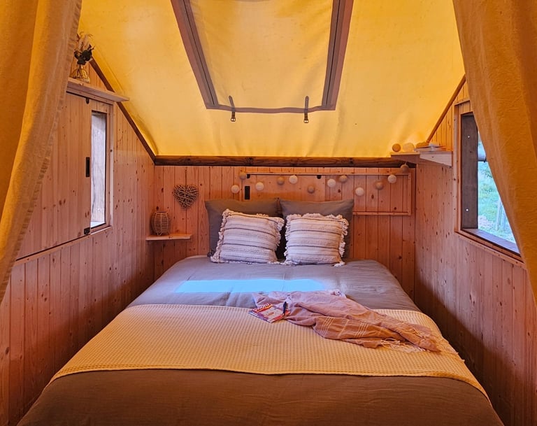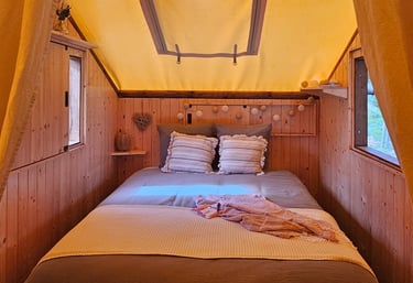 Découvrez notre harmonieuse et confortable cabane campeurs.